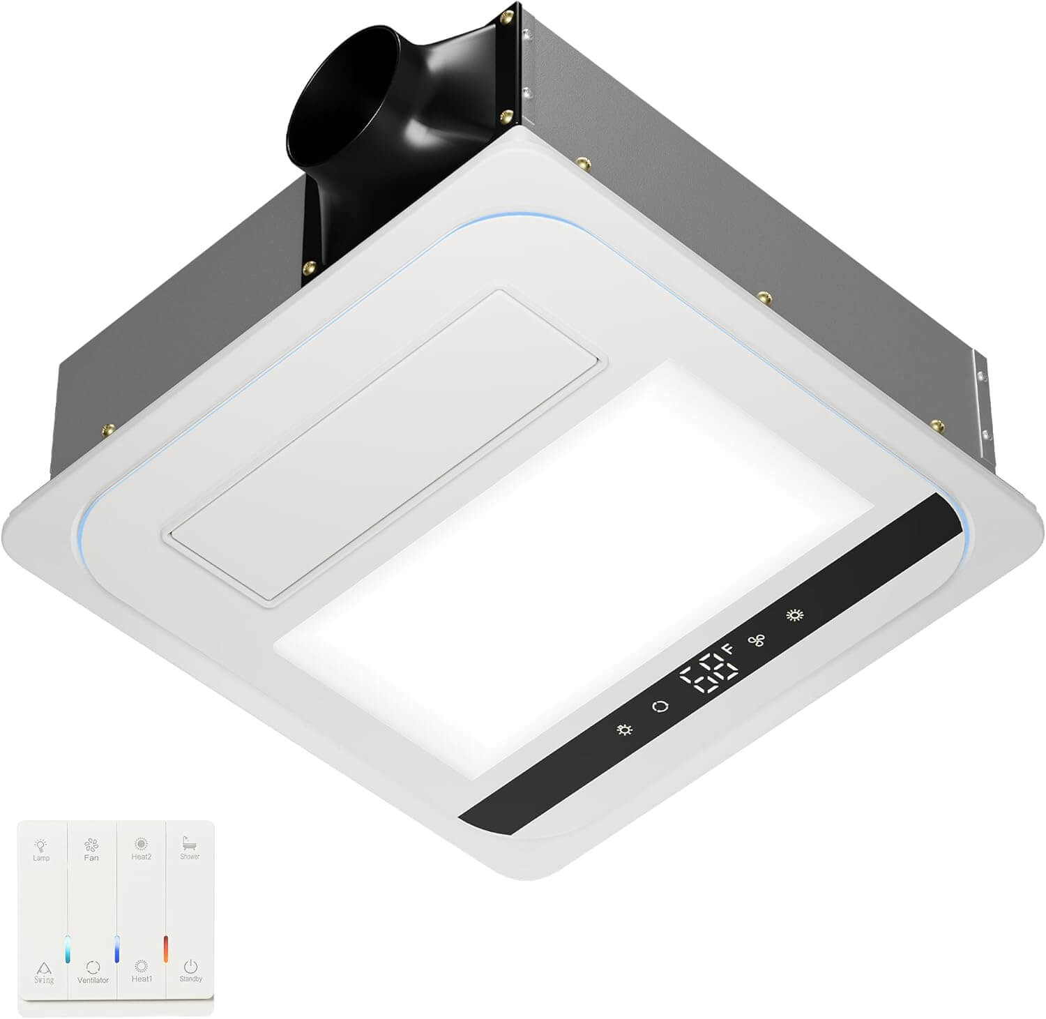 4-in-1 Bathroom Exhaust Fan with Light and Heater,Mirror Black - EF190-B