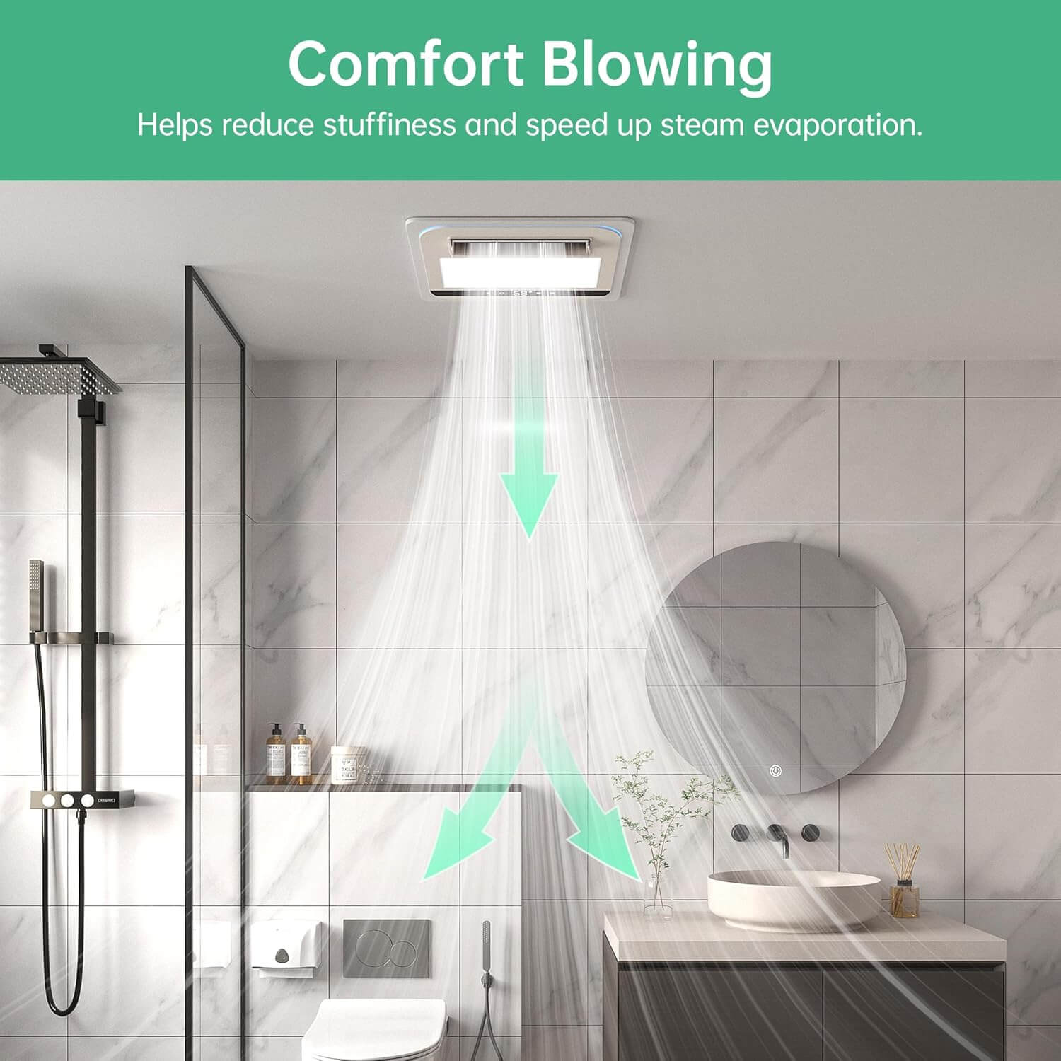 Bathroom Exhaust Fan with Light, Odor & Humidity Sensors,Ocean Mist - EF230-OM