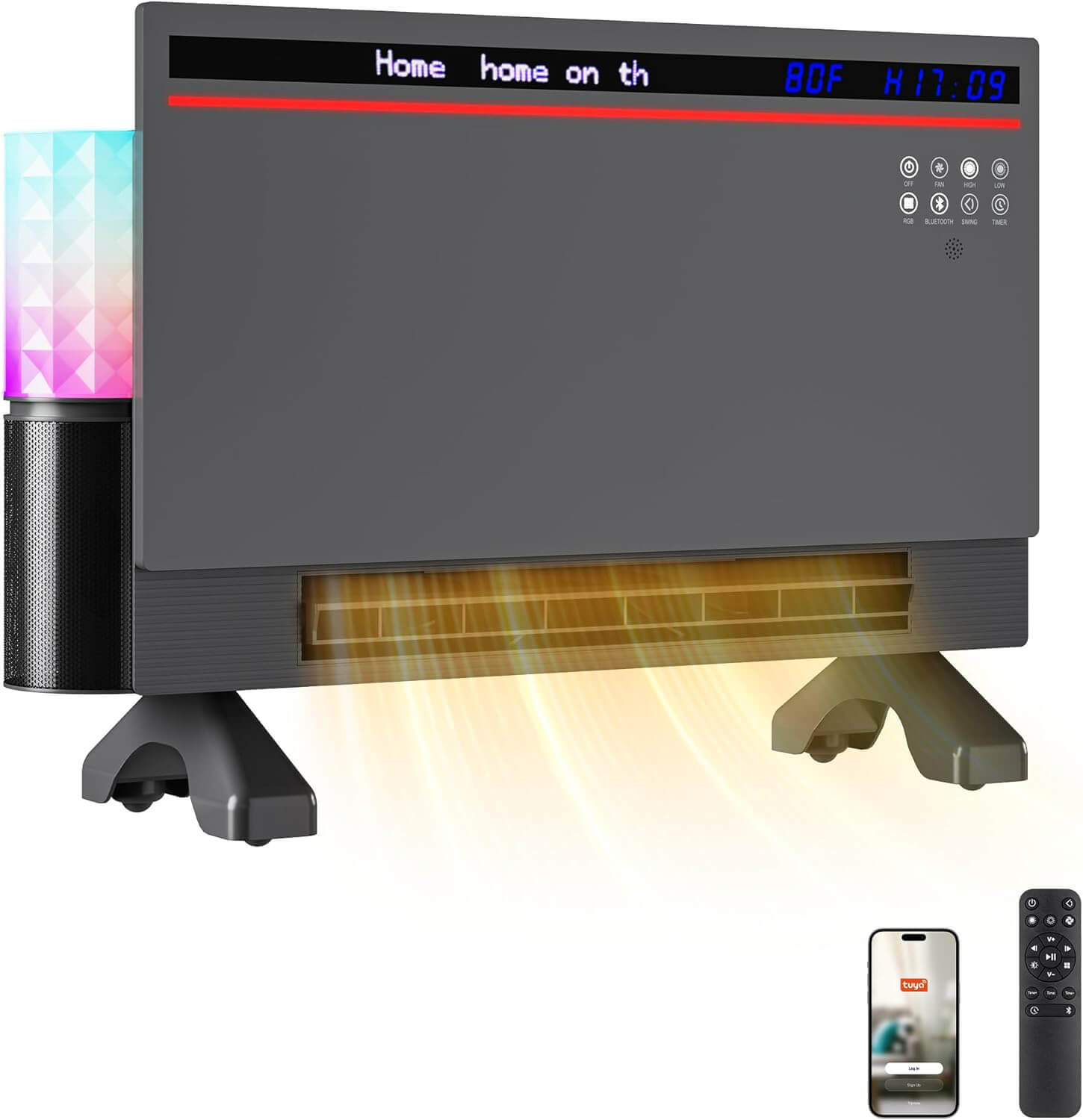 Smart Electric Space Heater with Bluetooth Speaker & RGB Light,Grey - ESH-G